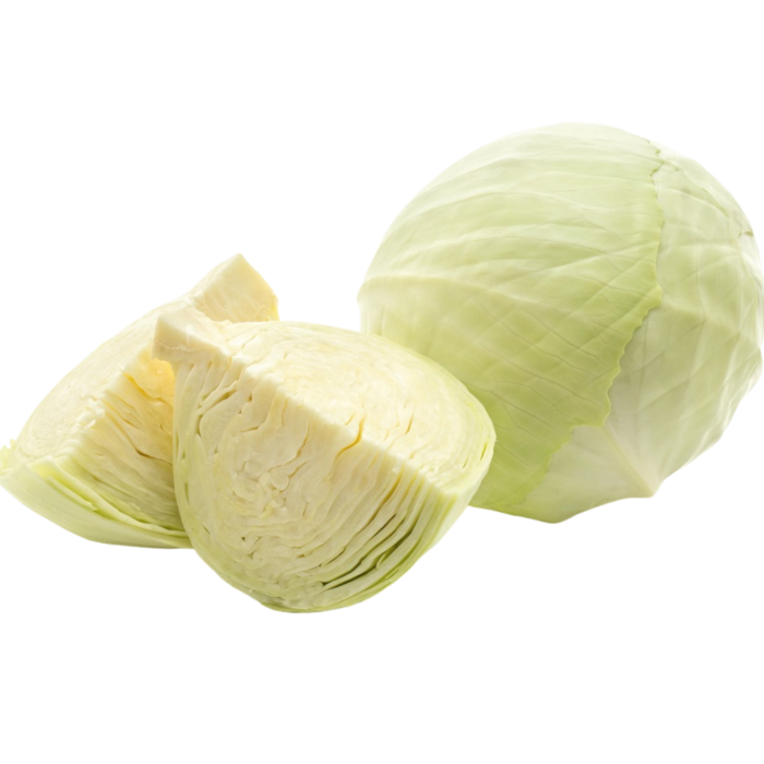 White cabbage is a round, dense vegetable with pale green to white leaves, known for its mild and slightly sweet flavor. It is a versatile ingredient used raw in salads like coleslaw for a crunchy texture, or cooked to become tender and milder. It is also very nutritious, offering a good source of vitamins K and C, fiber, and various minerals.