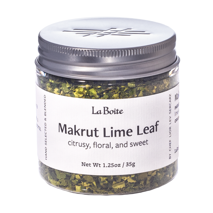 Makrut lime leaves are the fragrant leaves of the Makrut lime tree, which are a staple in Southeast Asian cuisine, especially Thai cooking. They have a strong, aromatic citrus flavor and are used to infuse soups, curries, and stir-fries, similar to how bay leaves are used in the West. The leaves are typically added whole and removed before serving, or can be thinly sliced into dishes.