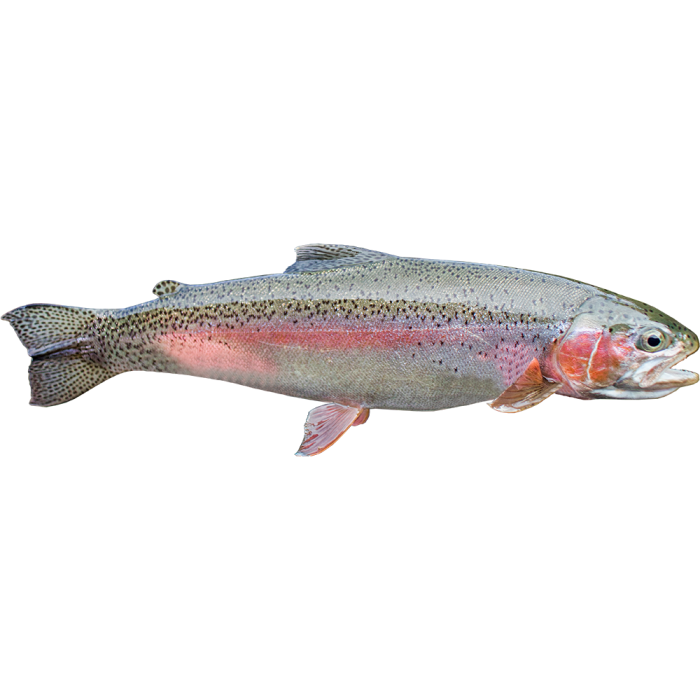 Rainbow trout ((Oncorhynchusmykiss)) is a species of freshwater fish native to North America, known for its silvery body, black spots, and a pink or reddish stripe along its sides. It is a popular game fish that eats insects, crustaceans, and small fish and has been introduced to many parts of the world, including the UK. Some populations are anadromous, meaning they migrate from the sea to freshwater to spawn and are called steelhead.