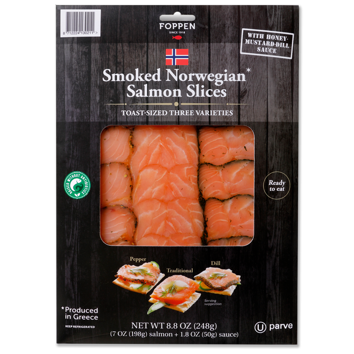 Hot-smoked flaked salmon is salmon that has been cured and then cooked through at a high temperature ((>80^{circ }C) or (176^{circ }F)) during the smoking process. This results in a fully cooked, moist, firm, and flaky texture that is ready to eat, with a deeper, more pronounced smoky flavor compared to cold-smoked salmon. The salmon can be enjoyed flaked on its own, or mixed into dishes like pasta, salads, or eggs.