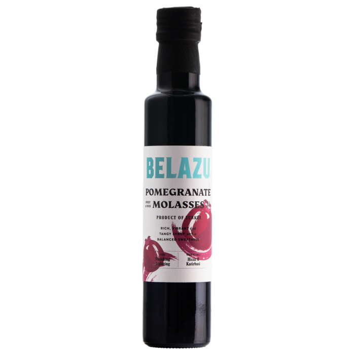 Pomegranate molasses is a thick, dark syrup made by reducing pomegranate juice, often with added sugar and lemon juice for preservation and flavor balance. It is a staple in Middle Eastern, Mediterranean, and African cuisines, used to add a tangy, sweet-sour flavor to both savory and sweet dishes like marinades, dressings, stews, and roasted meats.