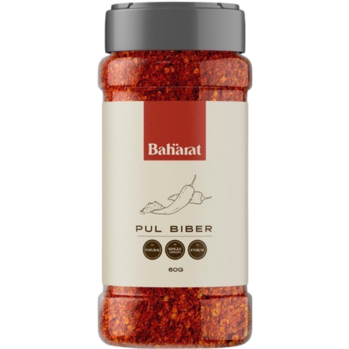 Aleppo Chilli Flakes | Pul Biber - Agora MarketPul biber is a coarsely ground chili pepper, also known as Aleppo pepper, with a mild, fruity heat and a slightly tangy, cumin-like flavor. It is a popular condiment in Turkish and Syrian cuisine, named after the city of Aleppo, and is used to add warmth and depth to dishes like kebabs, salads, and stews.