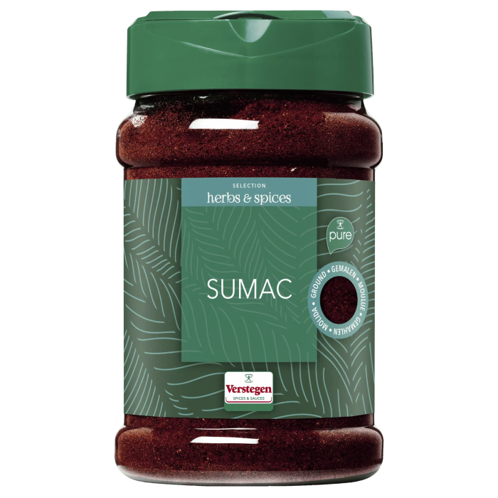 Sumac is a tangy, reddish-purple spice made from the ground berries of the Rhus genus of plants, native to the Mediterranean and Middle East. It has a sour, citrus-like flavor that is used to add a bright, tart taste to dishes, as a souring agent, or as a colorful garnish for dishes like hummus, salads, and grilled meats.