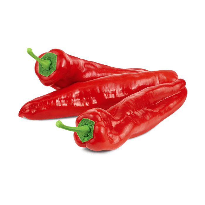 Sweet red peppers are the fully mature, sweet-tasting versions of green bell peppers, belonging to the Capsicum annuum species. They are not spicy because a recessive gene prevents the production of capsaicin, the compound that causes heat. Rich in vitamin C and antioxidants, they have a mildly sweet flavor and are used in a variety of dishes both raw and cooked.