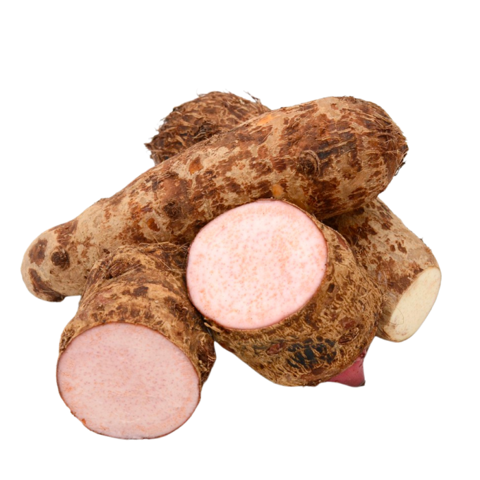 Yautia is a starchy, edible root vegetable, also known as malanga or cocoyam, that is popular in Caribbean, South American, and African cuisine. It has a rough, hairy, brown skin and crisp white or pinkish flesh with a nutty, earthy flavor. It is prepared by boiling, frying, or stewing and can be mashed or ground into a flour or paste for other dishes.