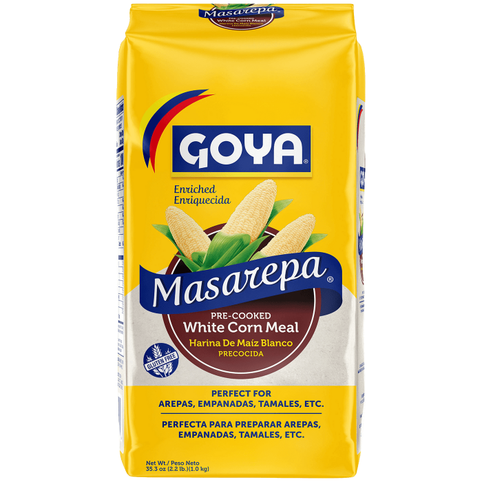 White masarepa is a finely ground, pre-cooked white cornmeal, a staple ingredient in many Latin American dishes, particularly Venezuelan and Colombian cuisine. It is made from 100% white corn and is the key ingredient for making foods like arepas, empanadas, and tamales. The flour is mixed with water to form a dough and is naturally gluten-free.