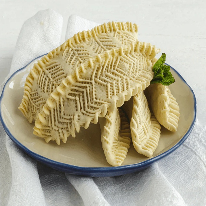 Bake in the preheated oven until gazelle horns are lightly golden and baked through, about 20 minutes. They should not get too dark. Let cool slightly, about 3 minutes.